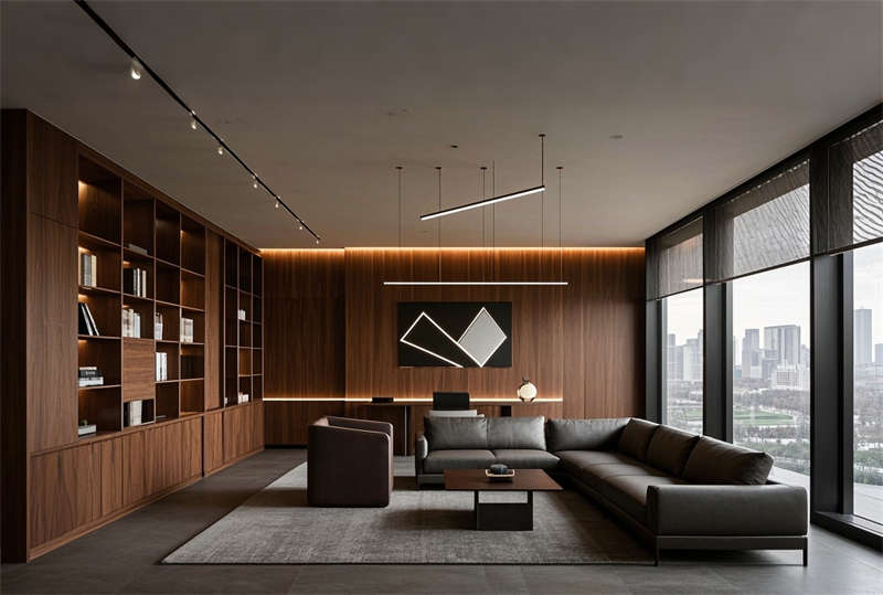 本項目為 3000㎡現(xiàn)代簡約風(fēng)格辦公室整體設(shè)計,以前沿的智能辦公理念為核心,采用淺灰、原木、金屬三色基調(diào)。空間規(guī)劃注重功能分區(qū)與動線優(yōu)化,包含開放辦公區(qū)、獨立辦公室、智能會議室等 10 大功能模塊。設(shè)計運用穿孔鋁板、GRG 造型吊頂?shù)刃滦筒牧希Y(jié)合聲學(xué)處理和智能控制系統(tǒng),打造高效舒適的辦公環(huán)境。照明系統(tǒng)采用 4000K 暖白光搭配線性燈帶,確保工作照度同時營造現(xiàn)代感。環(huán)保方面選用 E0 級板材和凈味涂料,配備新風(fēng)凈化系統(tǒng)。特色設(shè)計包括可升降圓桌休息區(qū)、電動霧化玻璃會議室及太空艙電話亭,充分滿足多元化辦公需求。空間內(nèi)設(shè)置 20% 靈活可變區(qū)域,支持未來團隊擴展。所有家具均符合人體工學(xué)標準,墻面裝飾融入企業(yè) VI 元素,塑造專業(yè)品牌形象。