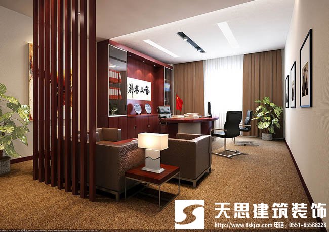 10.老板寫字臺左為角旗,右為印鼓。角旗喜張揚易發號,應五彩繽紛,宜在墻面上張掛榮譽證書,名譽牌匾、獎狀等,以宣傳自己或自己崇拜的偶像。旗張角響則響應者眾,忠誠之士勇于向前。右為印鼓,印鼓喜近主,易施令,故在寫字臺的右手位上宜擺放電腦、簽字筆、名片、印臺,公司CI標識物等等。鼓位為整個房間的最高地方,鼓鳴印彰則令行禁止,士屬無不遵紀守法,秋毫無犯。