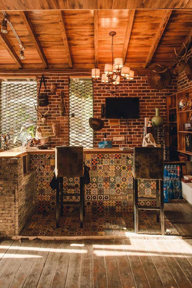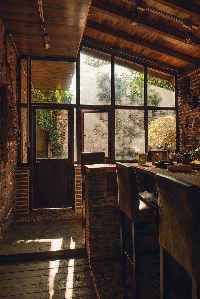 酒吧也有大大的玻璃窗,采光很好,可以在這里辦聚會,可以邀請上好友一起小酌幾杯。后院里還有廚房灶臺,可以做大鍋飯,也有燒烤架可以做BBQ。真是周末閑暇的好去處。
