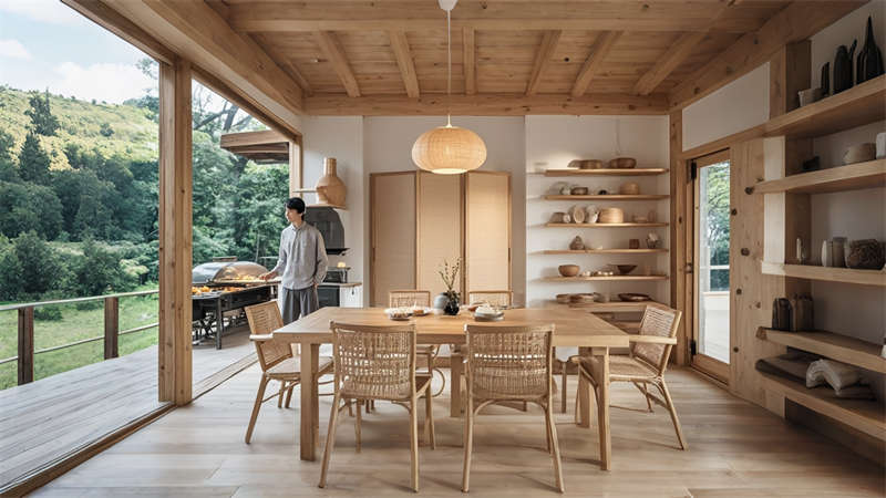 本 1500 平民宿設計以 ' 在地重生 ' 為核心理念,采用現代自然主義手法重構傳統民居??臻g規劃上保留原始建筑格局,設置12間主題客房與6大公共功能區。色彩體系以米白、淺灰為基底,點綴墨綠、陶土等大地色系。材料選用夯土、回收老木、亞麻等環保材質,搭配智能化隱蔽工程。