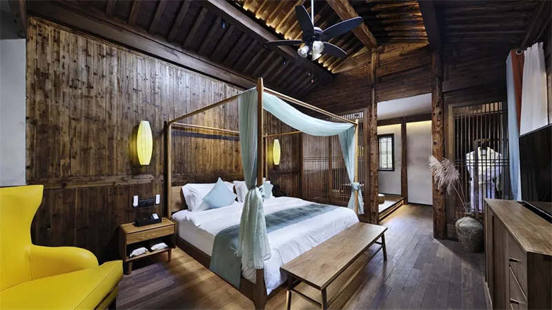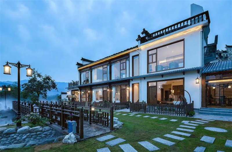 安徽黃山民宿設計在整體空間的把控上,色彩、架構、家具陳設力求統一渾然,木飾配合精選的現代裝飾主義陳設系統,分別以新中式、復古,北歐等風格為基調,搭配簡約現代的空間來表現,終形成了既大相徑庭又和諧統一的客房裝修方案,并為業主創造了良好的經營成果。