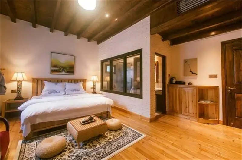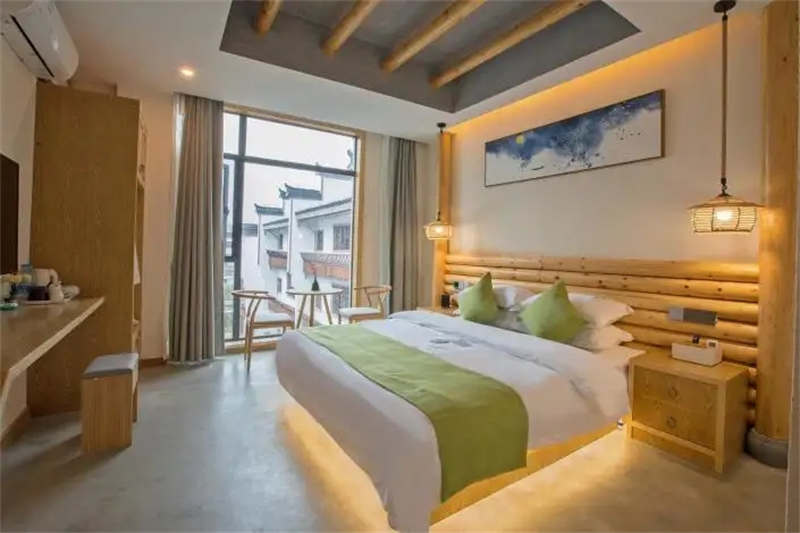 仿舊家具和藝術品的配置,也使臥室更加了時代感,總之黃山民宿設計就是化腐朽為神奇,在懷舊樸實中體現典雅的空間氣質。使整個室內空間基調散發著簡約雅致的氣質。多種風格主題的客房空間,通過巧妙地構思,將更多具有現代藝術質感的裝飾融合到黃山民宿設計空間中,從而提升民宿所表現的藝術境界。時尚簡約風的黃山民宿設計,會更容易得到年輕人的喜愛,整體簡潔大方。