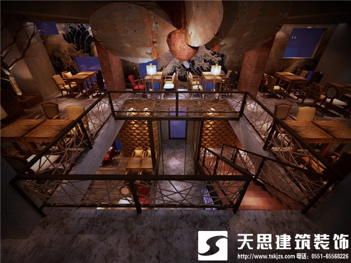 銅須水族主題會所,空間造型大氣磅礴,初入室內即被粗獷自然的設計所震撼。給人一種無限擴張的空間力量??臻g材料和色彩的運用細膩而大膽,情節化的場景布置與戲劇性的張力設計營造出豐富的視覺享受。